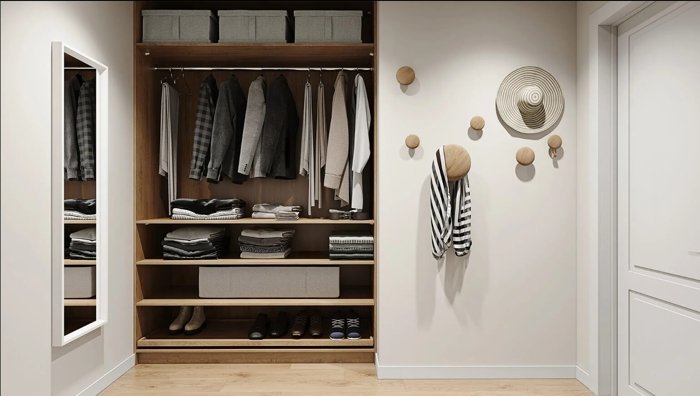 Пространство квартиры, предназначенное для хранения одежды и обуви. Гардеробная представляет собой отдельную комнату с организованными системами хранения