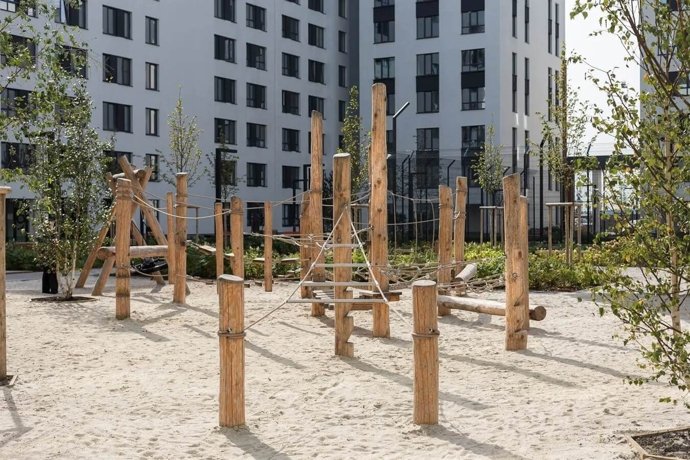 В центре — уютные урбан-виллы и камерные дома, вокруг — ступенчатые корпуса переменной этажности, которые закрывают двор от уличного шума и дарят невероятное ощущение уединённости. Здесь просторные зелёные холмы, дорожки для прогулок, зоны отдыха и детские площадки, утопающие в зелени. Террасы верхних этажей встречают утренним солнцем, а вечером открывают мягкие городские огни, превращая обычный ужин в маленький праздник.